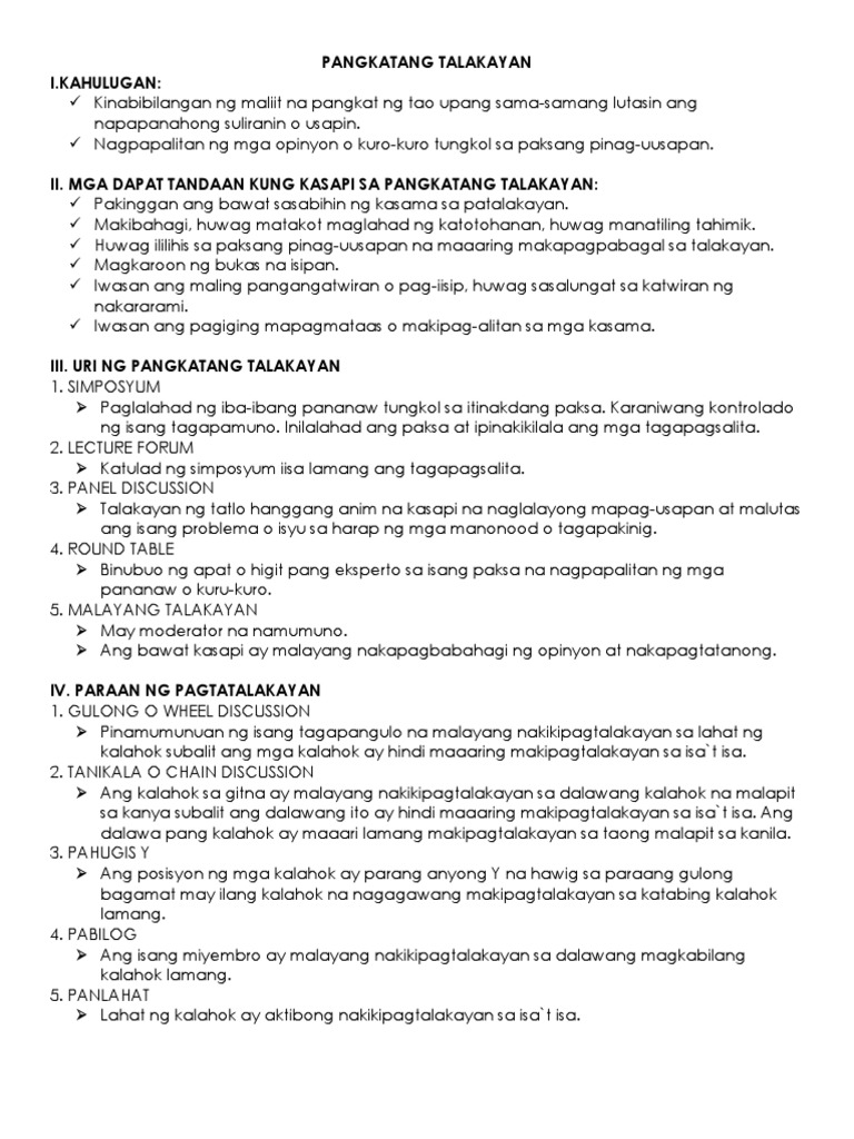 Sa kahulugan na ito lumilitaw ang mga talakayan kapag may mga magkasalungat na punto ng pananaw sa isang. Bakit karaniwang inilalagay sa unahan ng papel ang Abstrak. KASANAYAN SA PAGSASALITA Pangkatang Talakayan Sama-samang paglutas na.