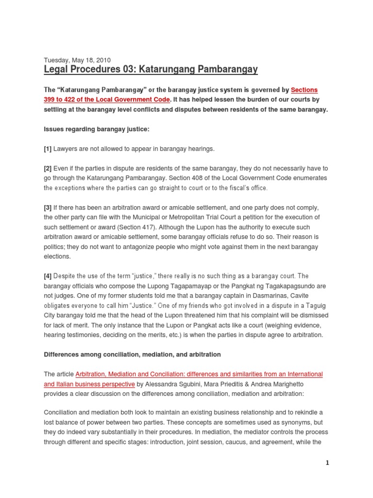 Legal Procedures Katarungang Pambarangay Pdf Alternative Dispute Resolution Arbitration